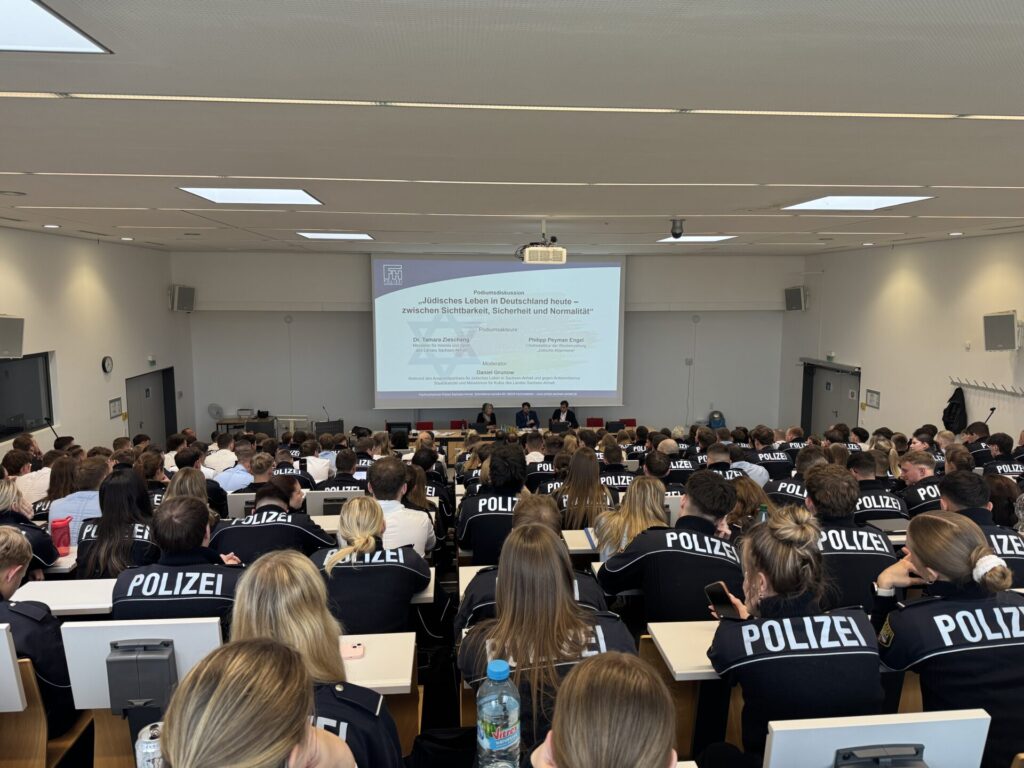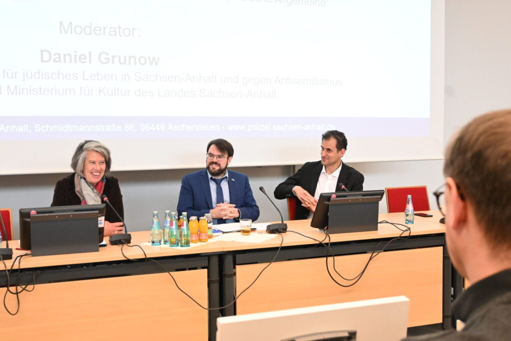 Ein weiterer Schwerpunkt der Podiumsdiskussion lag auf der Frage, welche Bedeutung die Auseinandersetzung mit jüdischem Leben für junge Menschen hat, insbesondere für die Anwärterinnen und Anwärter der Landespolizei Sachsen-Anhalt.